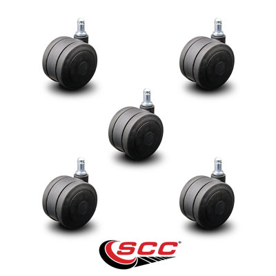 2 Inch Office Chair Casters Nylon Twin Wheel 7/16 Grip Ring Stem Set of 5 SCCListing is for (5) five 2" diameter unhooded twin wheel nylon chair, light furniture and fixture casters witha 7/16" diameter x 7/8" length grip ring stem. Supports up to 75 lbs. per caster or 375 lbs. total. Service CasterService Caster