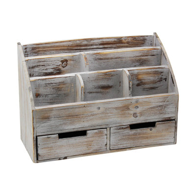 Vintage Rustic Wooden Office Desk Organizer & Mail Rack For Desktop, Tabletop, Or Counter - Distressed Torched Wood-Store Supplies, Desk Accessories,Whether in Your Office or Kitchen, You Will Be Sure To Catch The Attention Of Your Visitors, Clients, or Boss With This Elegant Distressed Wood Organizer Caddy. With 6 Compartments and 2 Drawers, This Oversized Organizer Will Hold All of Your Desk Accessories, Mail, or Office Supplies. Gracie OaksGracie Oaks