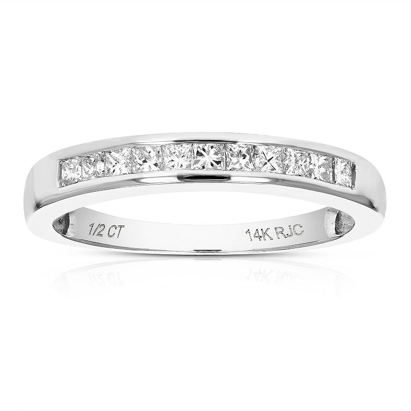 Amairah 14k Gold 1/2 Carat T.W. Princess Diamond Wedding Band Half Eternity Ring, Women's, Size: 10, 14k White GoldMark your special day with this Amairah 14k Gold Princess Diamond Wedding Band, showcasing a row of brilliant princess-cut diamonds in a classic half eternity design. This stunning 14k gold band is a timeless symbol of your enduring love and commitment. Click on this JEWELRY & WATCHES GUIDE to learn about fit, styles,Amairah