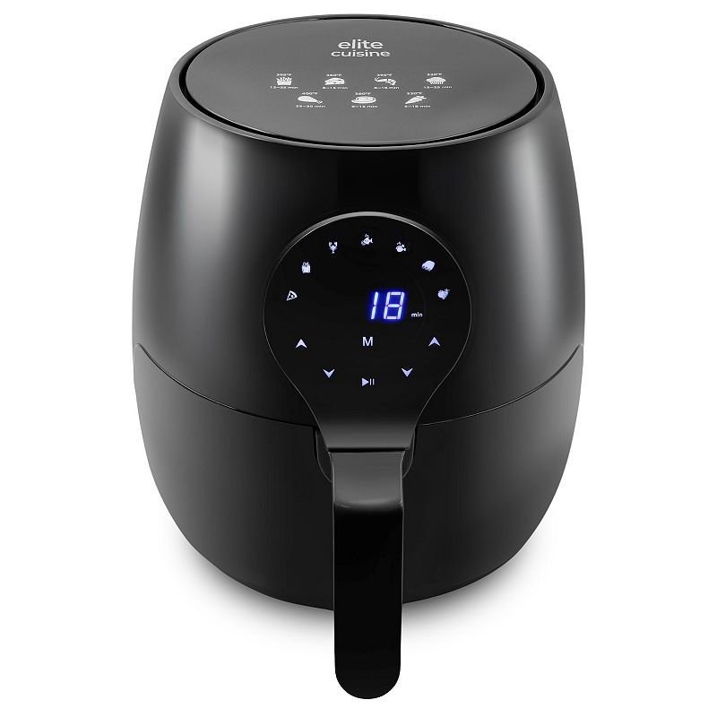 Elite Cuisine 5.3Qt. Digital Air Fryer with Pre-Set Functions, BlackThe Elite Cuisine Oil-Free 5.3 Quart Digital Air Fryer is ideal for a range of cooking tasks. Its large 5.3-quart capacity and advanced digital controls make it an indispensable kitchen appliance.The Elite Cuisine Oil-Free 5.3 Quart Digital Air Fryer is ideal for a range of cooking tasks. Its large 5.3-quart capacity aElite