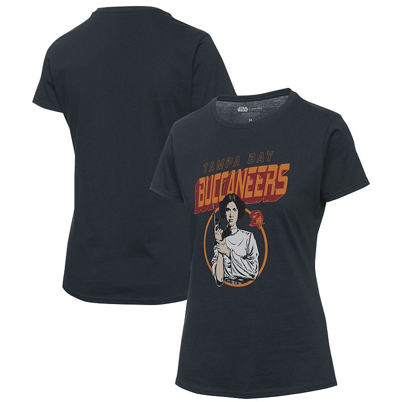 Women's Junk Food Black Tampa Bay Buccaneers Disney Star Wars Princess Leia T-Shirt, Size: LargeYour Tampa Bay Buccaneers are fearless on the gridiron, just like Princess Leia on the battlefield. Combine your two favorite fandoms in a bold, new way with this Junk Food T-Shirt. It features the Tampa Bay Buccaneers wordmark across the front in classic Star Wars font and an epic Princess Leia graphic to take your gaJunk Food