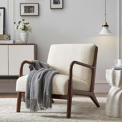 Accent Chair Living Room Chair Lambswool Accent Chair with Arms ChairsProduct Features Natural Linen Charm: This living room chair showcases natural linen fabric, offering a captivating natural allure that brings a sense of nature into your home. Classic Wooden Structure: Crafted from high-quality wood, both the chair's internal frame and armrests display classic wood grain textures, ensGeorge Oliver