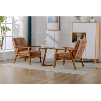 Accent Chairs Set Of 2 With Side Table, Modern Accent Chair, Wood And Fabric Armchairs Side Chair, Lounge Reading Comfy Arm ChairThe angle of the back, the position of the arms, and the width are designed ergonomically so that you can use our living room chairs comfortably. In addition, a piece of waist pillow can cushion your back, and this chair for bedroom is filled with high-density foam, which allows you to sit for a long time to free you fGeorge Oliver