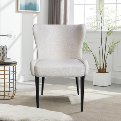 Bryen 21'' Wide Mid-Century Style Fabric Upholstered Wingback Accent Chair Side ChairIntroducing the ultimate accent chair-- A sophisticated seating option that will definitely steal the show. Experience the elegance and comfort of this exceptional living room chair, that is upholstered in a soft, white fabric that is not only stylish but also comfy for hours of serene sitting. The black metal legs proGeorge Oliver