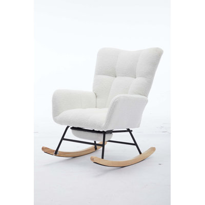 Modern Nursery Rocking Chair, Upholstered Glider Chair with High Backrest, Rocker Accent ArmchairProduct Features High-quality Cashmere Material - Upholstered in soft loop teddy material, this tasteful piece can bring you a gentle touch and elegant feel. The fabric is thick and luxurious, and the touch is very delicate. Gentle Rocking Chair - The swing range does not exceed 30, which is designed based on the conceGeorge Oliver
