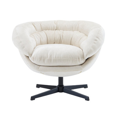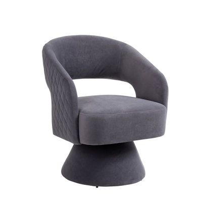 Ryniah Upholstered Accent Chair, 360 Degree Swivel Barrel Chair for Living Room, BedroomIt's crafted with a durable plywood frame and sturdy stainless steel base for stability. The chair features a soft, skin-friendly velvet fabric that's easy to clean and gentle on the skin. An extra-large cushion filled with high-quality foam provides ultimate relaxation and support. The chair comes with a supporting piMercer41