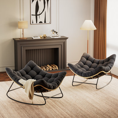 Upholstered Rocking Accent Chair With Soild Wood Leg, Oversize Papasan ChairThis chair design will add a touch of modern elegance to your space. Sink into bliss as you feel the plushness of the cushions wrap you in sheer comfort. Designed to be both aesthetically pleasing and functional, this chair's curved legs allow for an easy rocking motion, adding an element of relaxation to your seatingBay Isle Home