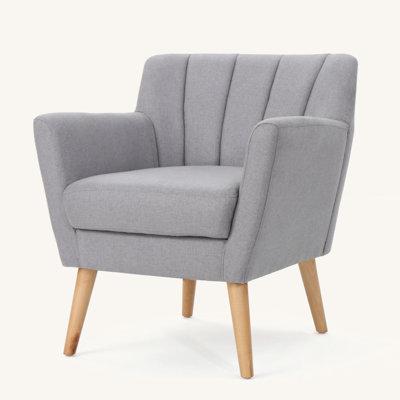Maretha Single Fabric Club Chair, Accent Chair with Birch Wood LegsMID-CENTURY MODERN: Blending together gorgeous channel stitching and splayed wood legs, our club chair offers a mid-century look to your lounge space. With its clean lines and understated look, this set uses new materials to reimagine a traditional design. George Oliver Fabric: Light Gray LinenGeorge Oliver