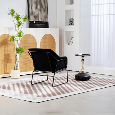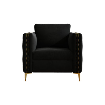 Accent Chair For Living Room Upholstered Arm Chair With Metal Legs VelvetELEGANT DESIGN: The chair is decorated with rivets combined with metal legs, and the armrests are button tufted on both sides. This chair looks both classic and fashionable, bringing warm decoration to your home. House of Hampton Fabric: Black FabricHouse of Hampton