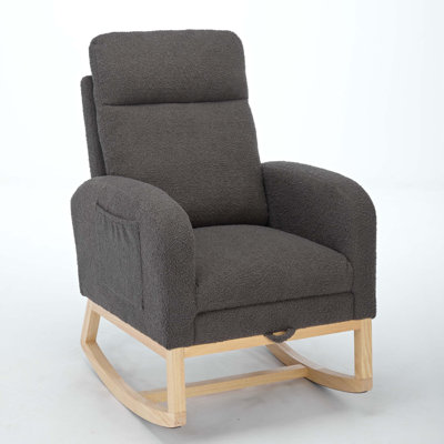 Modern Accent Rocking Chair Rocking Chair with Solid Wood Legs, Upholstered Nursery Glider RockerProduct Features [Rocks Gently for Better Comfort] This baby rocking chair adopts excellent radian design, and there are non-slip foot pads under the base, making it rock gently and smoothly. Such thoughtful design is very suitable for relaxing or babies nursery, relieving your fatigue of the day effectively. [High-denLatitude Run