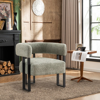 Accent Chair,Modern Lounge Chair For Bedroom,Upholstered Reading Armchair With Metal And Wooden ArmsMODERN & COMFY ACCENT CHAIR Revel in comfort and relaxation with this modern accent chair, featuring seat cushion and backrest crafted from high-density, high-elasticity natural sponge, offering cozy seating with excellent breathability.350LBS WEIGHT CAPACITY Enjoy stability and durability with this living room chair,Latitude Run