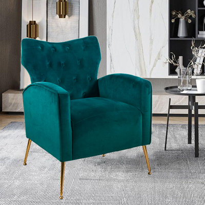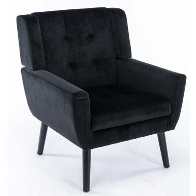 Jaedin 25.98" W Tufted Velvet Armchair, Upholstered Wingback Chair, Accent Chairs with Armrests/Pillow, Comfy Tufted Easy Stylish Velvet Accent ChairOur Upholstered Tufted Accent Arm Chair features a unique wingback shape and a mid-century modern stylish design. Comfy ergonomical backrest, super thick cushion, padded armrests and sturdy wood & metal construction give you the ultimate sitting experience. Pefect for living room, bedroom, office, reception room, apartMercer41