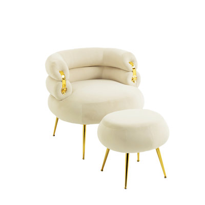 Jennet Upholstered Velvet Barrel Accent Chair With Ottoman,Accent Comfy Lounge Arm Chair And Footrest Stool Set,Single Sofa Armchair With Lounge SeatThe Velvet Accent Chair is a sophisticated and stylish addition to your living space, offering a perfect blend of modern design and comfort. The chair is upholstered in luxurious velvet, providing a soft and elegant touch to your room.The tufted backrest adds a classic and refined look to the chair, enhancing its visuaMercer41