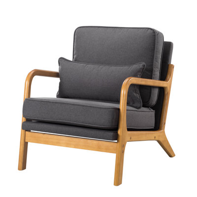 George Oliver Mid Century Modern Chair Accent Chair, Living Room Chairs With Waist Cushion, Upholstered Accent Chairs With Wood Arms For Living Room AIntroducing our elegant Mid-Century Modern Accent Chair, a perfect addition to any home or office. With its timeless design, this 25.4 chair effortlessly complements various decor styles, making it an ideal choice for living rooms, bedrooms, or offices. It's not just a chair; it's a haven for relaxation after a long daGeorge Oliver