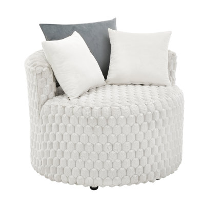 Malna Plush 3D Upholstered Barrel Accent Chair With Wheels,Reading chair,Bedroom chair[Plush Wide Wale Corduroy Upholstery:] The luxurious wide wale corduroy fabric adds a rich texture and sophisticated look, providing a soft and comfortable seating experience. Everly QuinnEverly Quinn