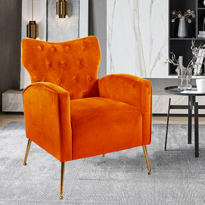 Upholstered Velvet Barrel Accent Chair With Ottoman,Accent Comfy Lounge Arm Chair And Footrest Stool Set,Single Sofa Armchair With Lounge Seat For BedImmerse yourself in the luxurious softness of velvet with our modern accent chairs. Designed for ultimate comfort, featuring padded armrests and a matching ottoman, creating a cozy reading nook or TV-watching haven. Mercer41 Fabric: Orange VelvetMercer41