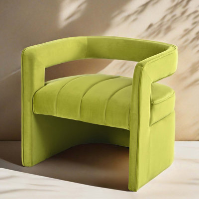 Velvet Accent Chair with Ribbed Detail, Curved Fully Upholstered Accent Chair, GreenThe curved armchair upholstered in black velvet perfectly embody contemporary design, blending timeless elegance with modern flair to create a statement piece that will elevate any room it graces. The tub's curved shape provides maximum back support, while the fluting detail and retro design make a statement. The moderMercer41