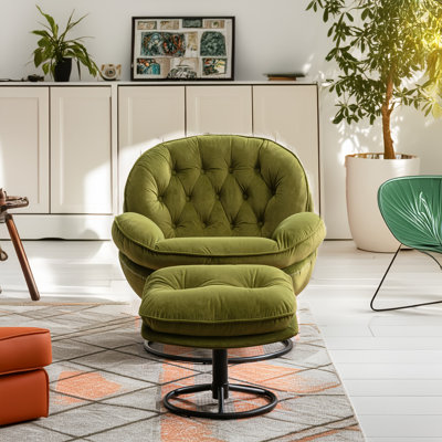 Accent Chair TV Chair Living Room Chair With OttomanChair Dimensions,31.73"W x 33.50"D x 33.78"H Grovelane Fabric: Fruit Green VelvetGrovelane