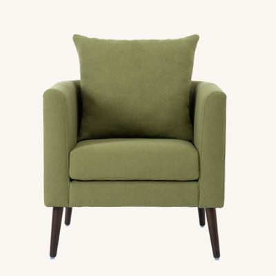 Parissa Barrel Chair, Accent Armchair with Solid Wood Legs, Upholstered Club Chair with Pillow, Padded Single Chair for Living RoomComfy and Stylish Our modern comfy accent chair with tub barrel style backrest makes you relieve your tiredness. The waist pillow could better the support for your back and waist,which is a perfect choice for your leisure time.The anti-slip footpad could also protect your floor when you move the living room chair. CorrCorrigan Studio