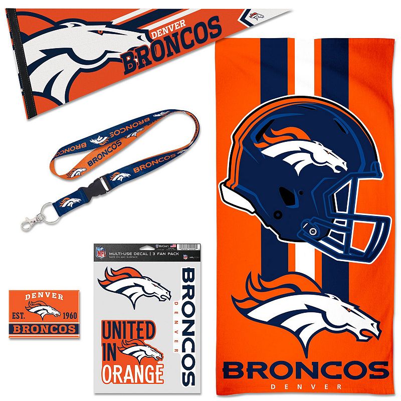 WinCraft Denver Broncos House Fan Accessories Pack, TeamBe ready to show team spirit anywhere with this Denver Broncos Fan accessories pack from WinCraft. It includes a pennant, lanyard, magnet, towel and three-pack of decals. With bold graphics, this pack has everything needed to turn any room into the best Denver Broncos fan cave.Be ready to show team spirit anywhere withUnbranded