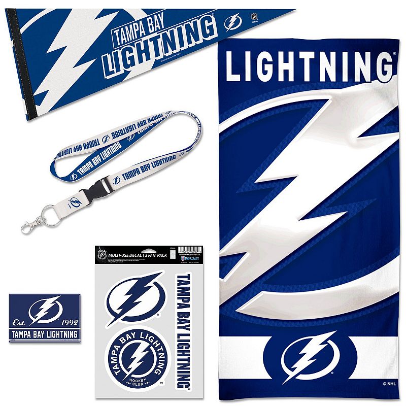 WinCraft Tampa Bay Lightning House Fan Accessories Pack, Lgh TeamBe ready to show team spirit anywhere with this Tampa Bay Lightning Fan accessories pack from WinCraft. It includes a pennant, lanyard, magnet, towel and three-pack of decals. With bold graphics, this pack has everything needed to turn any room into the best Tampa Bay Lightning fan cave.Be ready to show team spirit anyUnbranded