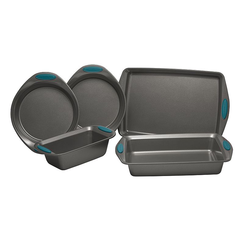 Rachael Ray Yum-o! 5-pc. Nonstick Oven Lovin' Bakeware Set, BlueEnjoy this convenient Rachael Ray nonstick Oven Lovin' bakeware set for all of your kitchen creations.PRODUCT FEATURES Heavy-gauge steel construction resists warping Long-lasting nonstick provides excellent food release and easy cleanup Bold-colored, extra-wide grippy handles provide a confident grasp WHAT'S INCLUDED 9Rachael Ray