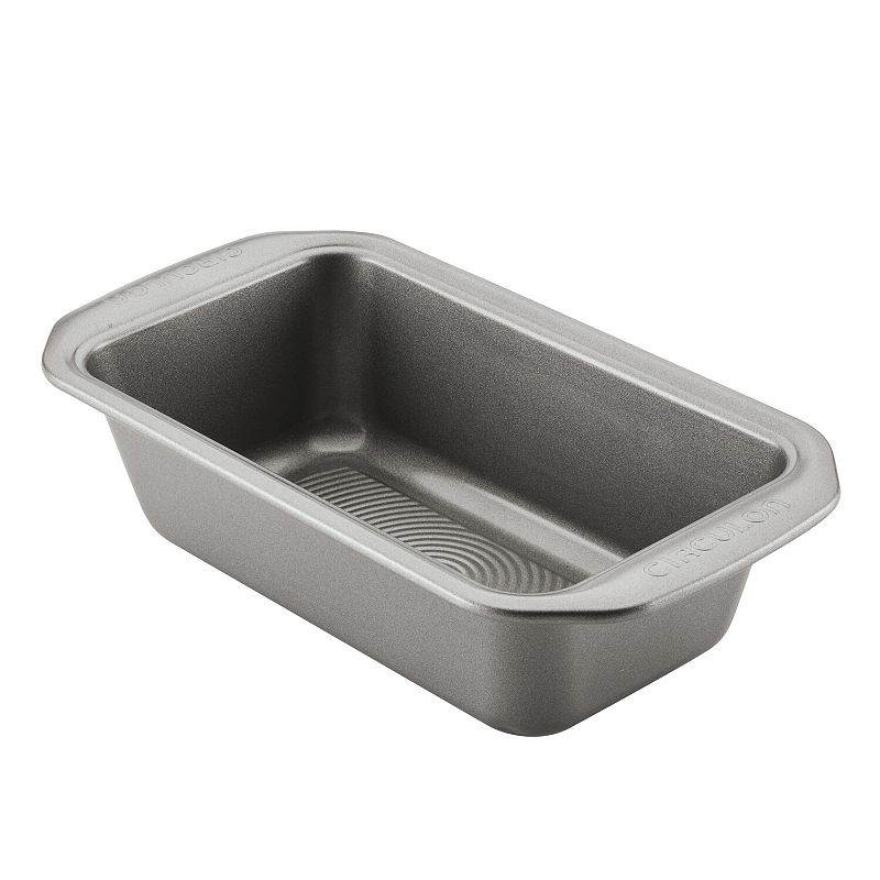 Circulon Nonstick Bakeware 9-in. x 5-in. Loaf Pan, GrayBake breads or a luscious meat loaf to perfection with the Circulon Nonstick Bakeware 9-inch x 5-inch Loaf Pan. Bake breads or a luscious meat loaf to perfection with the Circulon Nonstick Bakeware 9-inch x 5-inch Loaf Pan. FEATURES DURABLE LOAF PAN: Heavy gauge steel construction offers uniform heat distribution, andCirculon