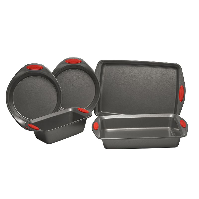Rachael Ray Yum-o! 5-pc. Nonstick Oven Lovin' Bakeware Set, RedEnjoy this convenient Rachael Ray nonstick Oven Lovin' bakeware set for all of your kitchen creations.PRODUCT FEATURES Heavy-gauge steel construction resists warping Long-lasting nonstick provides excellent food release and easy cleanup Bold-colored, extra-wide grippy handles provide a confident grasp WHAT'S INCLUDED 9Rachael Ray