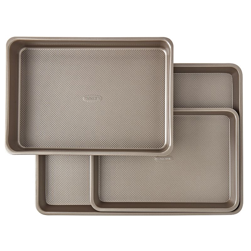 Bakersville Textured Carbon Steel 3-Piece Bakeware Set, BronzeThis versatile 3-piece set offers superior heat distribution for perfect baking results, with a textured surface that ensures easy food release and cleanup.This versatile 3-piece set offers superior heat distribution for perfect baking results, with a textured surface that ensures easy food release and cleanup.FEATURESBakersville