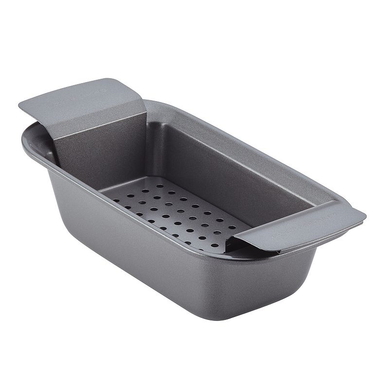 • Rachael Ray Bakeware Loaf Pan, 9-Inch x 5-Inch, GrayWith a clever two-piece design that includes a standard loaf pan and a removable insert for making meatloaves, this loaf pan by Rachael Ray is a must-have in any kitchen. Sturdy steel construction provides dependable baking and roasting performance Long-lasting nonstick inside and out delivers excellent food release wi