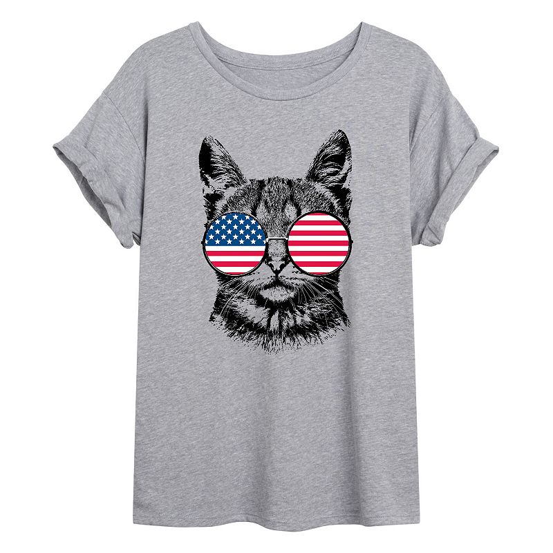 Juniors' US Flag Glasses Cat Flowy Tee, Girl's, Size: XXL, GreyPull out the sunglasses with this juniors' flowy tee. Pull out the sunglasses with this juniors' flowy tee. Crewneck Rolled short sleevesFABRIC & CARE Cotton, polyester Machine wash Imported Size: Xxl. Color: Grey. Gender: female. Age Group: kids. Pattern: Graphic.Licensed Character