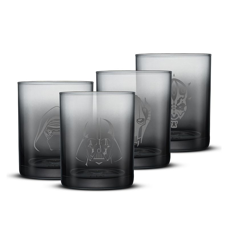Star Wars 4-Pack Dark Side Short Drinking Glasses, MultiCraft the perfect villainous cheers with these short glasses! These glass tumblers each showcase Darth Vader, Darth Maul, Kylo Ren, and General Grievous in individual designs, letting you choose your favorite villain for each toast. The sturdy base is built to last, so you can enjoy your favorite drinks with friends ?Star Wars
