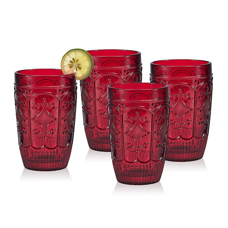 Fitz & Floyd Trestle 4-Piece 12-oz. Highball Glasses Set, RedFeaturing a unique embossed design that recalls the intricate, open framework of classic bridge architecture, this set of four highball glasses is brimming with classic style. Featuring a unique embossed design that recalls the intricate, open framework of classic bridge architecture, this set of four highball glassesFitz & Floyd