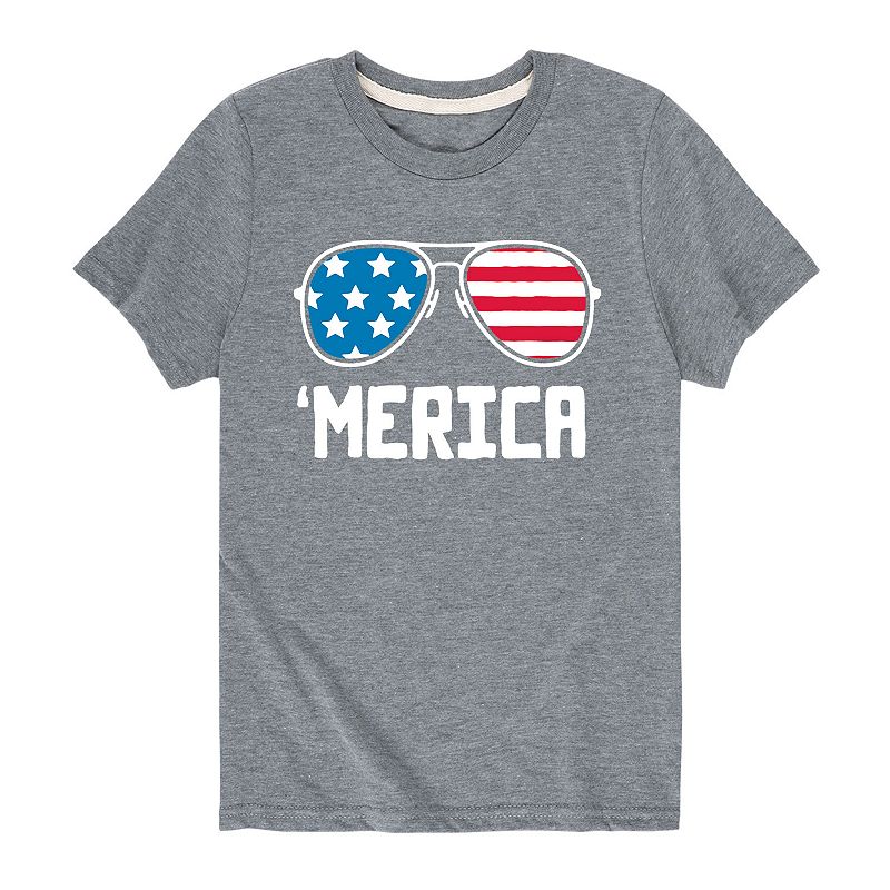 Boys 8-20 'Merica Aviator Glasses Tee, Boy's, Size: Small, GrayGet patriotic in this 'Merica Aviator Glasses boys' graphic tee. Get patriotic in this 'Merica Aviator Glasses boys' graphic tee. Crewneck Short sleevesFABRIC & CARE Heathered: cotton, polyester; Solid: cotton Machine wash Imported Size: Small. Color: Gray. Gender: male. Age Group: kids.Licensed Character