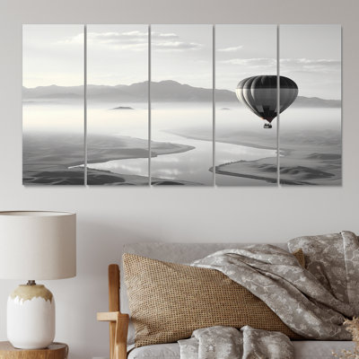 Grey Hot Air Balloon Monochrome - Hot Air Balloon Canvas Wall Art - 5 Equal PanelsThis beautiful "Grey Hot Air Balloon Monochrome" wrapped canvas art set is printed using the highest quality fade-resistant ink on canvas. This wall art set is printed on premium quality cotton canvas, using the finest quality inks which will not fade over time. Each giclee print is stretched tightly over a 1-inch woodEbern Designs