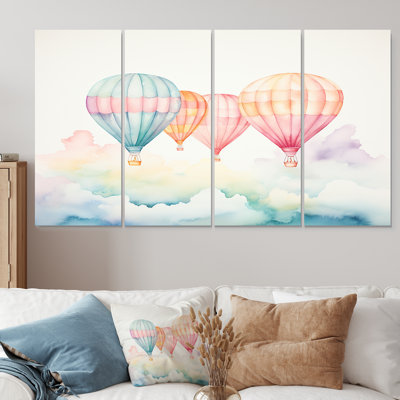 Green And Red Watercolor Hot Air Balloon Horizon II - Hot Air Balloon 4 Piece Wall ArtThis beautiful "Green And Red Watercolor Hot Air Balloon Horizon II" Multipanel canvas art is printed using the highest quality fade-resistant ink on canvas. This Canvas print set of 4 is printed on premium quality canvas, using the finest quality inks which will not fade over time. Each giclee print is stretched tightLatitude Run