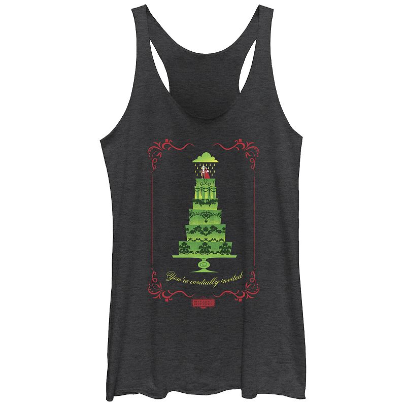 Juniors' Beetlejuice 2 You're Cordially Invited Wedding Cake Invitation Racerback Tank Top, Girl's, Size: XXL, Black GreyShe'll love the look and feel of this Juniors' Beetlejuice 2 You're Cordially Invited Wedding Cake Invitation Racerback Tank Top. FEATURES Scoopneck SleevelessFABRIC & CARE Polyester, cotton, rayon Machine wash Imported Size: Xxl. Color: Black Heather. Gender: female. Age Group: kids.Licensed Character