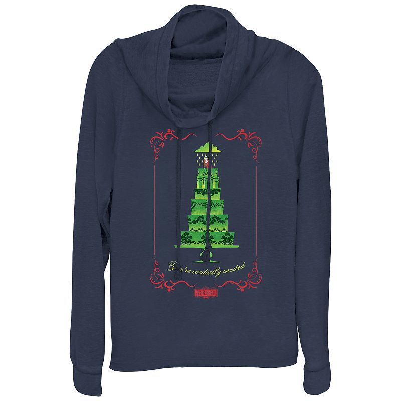 Juniors' Beetlejuice 2 You're Cordially Invited Wedding Cake Invitation Cowlneck Graphic Lightweight Long Sleeve, Girl's, Size: Large, BlueShe'll love the look and feel of this Juniors' Beetlejuice 2 You're Cordially Invited Wedding Cake Invitation Cowlneck Graphic Lightweight Long Sleeve. FEATURES Cowlneck Long sleevesFABRIC & CARE Polyester, rayon, spandex Machine wash Imported Size: Large. Color: Navy. Gender: female. Age Group: kids.Licensed Character