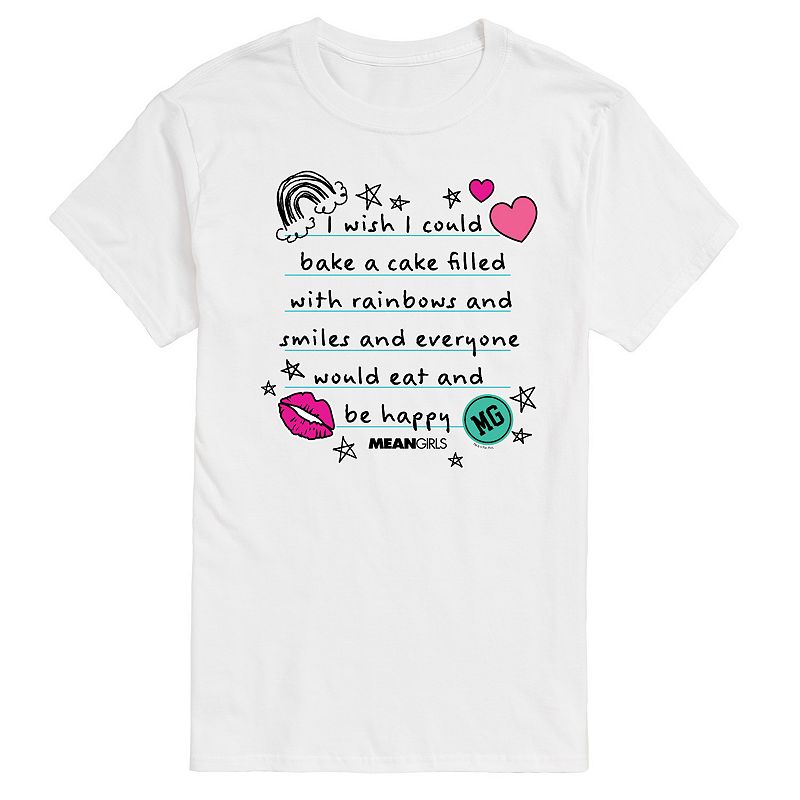 Men's Mean Girls Cake Filled Graphic Tee, Size: XXL, WhiteKeep an eye on style with this men's Mean Girls Cake Filled Graphic Tee. FEATURES Crewneck Short sleeveFABRIC & CARE Solid colors: cotton; Heather colors: cotton, polyester Machine wash Imported Size: XXL. Color: White. Gender: male. Age Group: adult.Licensed Character