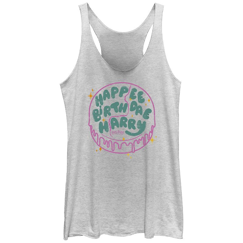 Juniors' Harry Potter Birthday Cake Tri-Blend Racerback Graphic Tank Top, Girl's, Size: Large, White GreyShe'll love the look and feel of this Juniors' Harry Potter Birthday Cake Tri-Blend Racerback Graphic tank top. FEATURES Scoopneck SleevelessFABRIC & CARE Polyester/Cotton/Rayon Machine wash Imported Size: Large. Color: White Heather. Gender: female. Age Group: kids.Licensed Character