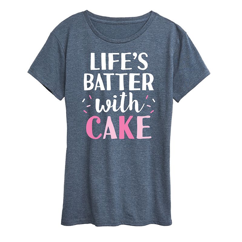 Women's Life's Batter With Cake Graphic Tee, Size: Large, Grey BlueShe will love showing off her style with this Women's Life's Batter With Cake Graphic Tee. FEATURES Short sleeves CrewneckFABRIC & CARE Solid Color: Cotton ; Heather Colors: Cotton/Polyester Machine wash Imported Size: Large. Color: Heather Blue. Gender: female. Age Group: adult.Licensed Character