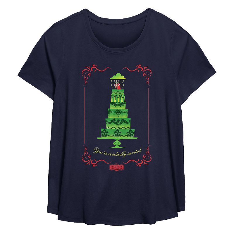 Plus Size Beetlejuice 2 You're Cordially Invited Wedding Cake Invitation Flowy Graphic Tee, Women's, Size: 5XL, BlueShell love the look and feel of this Plus Size Beetlejuice 2 You're Cordially Invited Wedding Cake Invitation Flowy Graphic Tee. FEATURES Scoopneck Short sleevesFABRIC & CARE Cotton, polyester Machine wash Imported Size: 5X. Color: Navy. Gender: female. Age Group: adult.Licensed Character