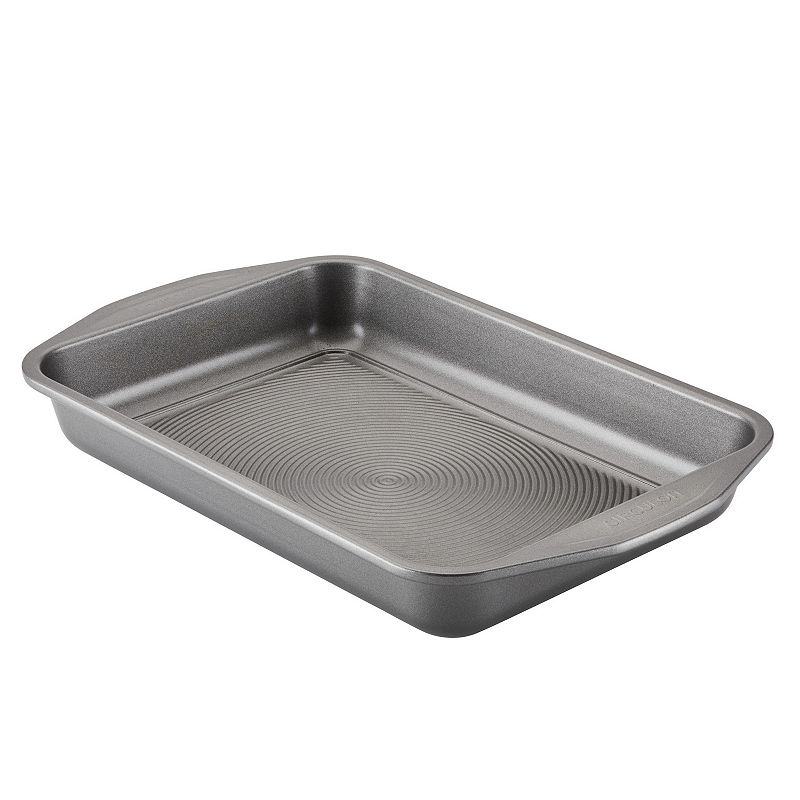Circulon Nonstick Bakeware 9" x 13" Rectangular Cake Pan, GrayFor a delightful mess of brownies or a gorgeous cake, you'll love the nonstick technology and incomparable durability of this Circulon nonstick cake pan. Heavy gauge steel construction with warp-resistant, rolled-rim design for beautiful, long-lasting baking performance Premium-nonstick-coated surface of raised circlesCirculon