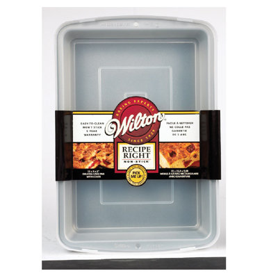 Wilton 191003187 Recipe Right Non Stick Covered Cake Pan, 13" X 9"Recipe Right is constructed of heavy gauge steel that provides an even heating performance, baking experts prefer for perfectly browned baked goods. Non stick coating. Easy clean up. WiltonWilton