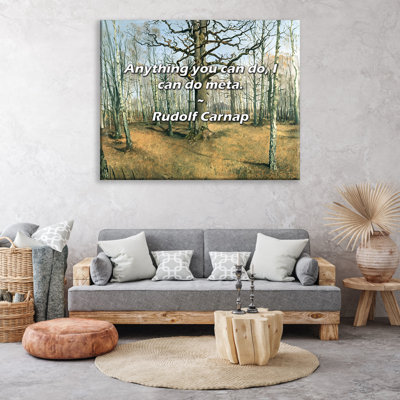 Artsy Quote "Anything you can do, I can do meta." By Rudolf Carnap Gallery Wrapped CanvasMuseum quality fine art giclee reproduction printed on artist grade canvas. Wrapped and framed in a two inch black ornate wood frame. World MenagerieWorld Menagerie