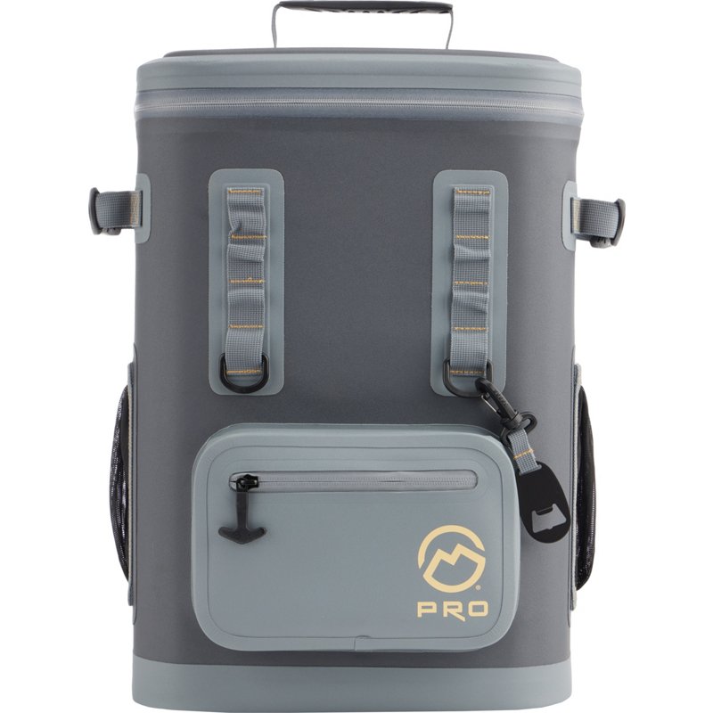 Magellan Outdoors Pro Leakproof 24-Can Backpack Cooler Grey/Gold - Prsnl Coolrs Soft/HardAdventure the outdoors wearing the Magellan Outdoors Pro Leakproof 24-Can Backpack Cooler. The 840-denier nylon shell with double-sided TPU lamination delivers lasting durability, and the heavy-duty, water-tight zippers and buckles protect against leaking or spilling. An air-tight design lets the cooler float even whenMagellan Outdoors