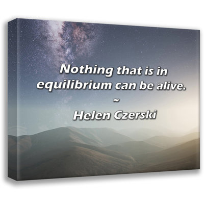 Artsy Quote "Nothing that is in equilibrium can be alive." By Helen Czerski Gallery Wrapped CanvasMuseum quality fine art giclee reproduction printed on artist grade canvas. Wrapped and framed in a two inch black ornate wood frame. Latitude Run Overall Size: 13" H x 18" WLatitude Run
