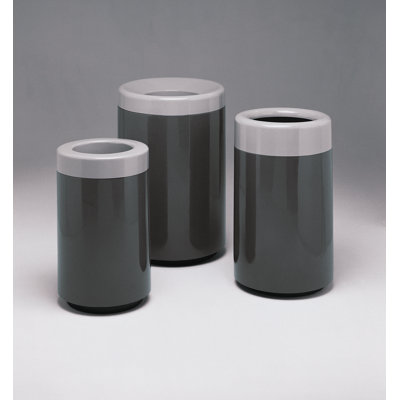 Top Entry Round Series Receptacle 25 Gallon Trash CanThe open-mouth top lifts off for easy access to the supplied rigid liners. Ideal for airports, malls, cafes, and countless other locations. Witt Top Style: No edge trim, Base Color: Charcoal, Top Color: CharcoalWitt