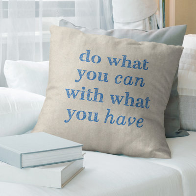 Handwritten Do What You Can Quote PillowDouble sided print- Textured Poly "Twill" material with concealed zipper. Adorned with original artwork, this timeless design will perfectly compliment your style. Woven in a twill weave style to give the pillow a slightly more rugged feel. Cover = Machine Wash Separately in Cold Water - Gentle Cycle - Mild Detergent -ArtVerse