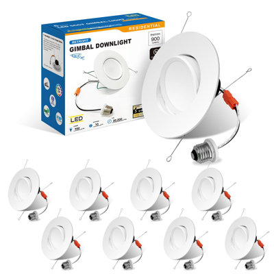 Modern 8 Pack 5/6 Inch Rotatable Retrofit Gimbal LED Can Lights Dimmable, 11W, 2700K-5000K, 1100LM, CRI90 Directional Angled Trim Adjustable Ceiling DAdjustable AnglesWith a swiveling lens, this LED retrofit downlight gimbal indoor offers the ability to focus light on key areas of your room or office,showcasing its unique beauty. Tilt the optic 30 and swivel a full 360 Improve Your Living Environment This LED gimbal downlight designed for easy retrofit, renovation,MW LIGHTING